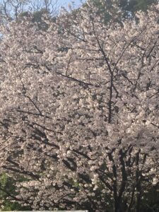 暖かい日差しのなか、桜が見える場所で職員も一緒にお弁当を頂きました。