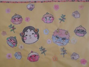 今月のぬりえ壁飾りは 節分 にしました。可愛く出来上がりましたよ~
