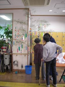 イベントもうすぐ七夕ですね! ゆうパルではひと足早く七夕メニューでした。そうめんは皆様食べやすいようで、いっきに食べてしまいました。先週から、短冊に願い事を書いて、色々な飾りを作ってきました。皆様の願い事の多くは誰かを想っての内容ばかりでした。