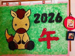5日から営業させて頂いています。今年もうま~く🐴干支の壁飾りが出来上がりました‼